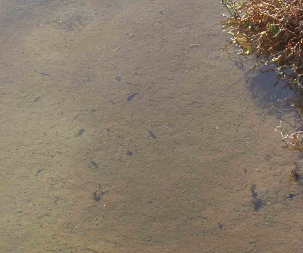 I stopped at the Salt Creek Boardwalk. Fortunately a man there told me how to find the pupfish. He told me to look for the fish’s shadow. Sure enough, I found the shadow and then saw the fish. Here is a photo of the shadow and fish. Hopefully you can see them both.
