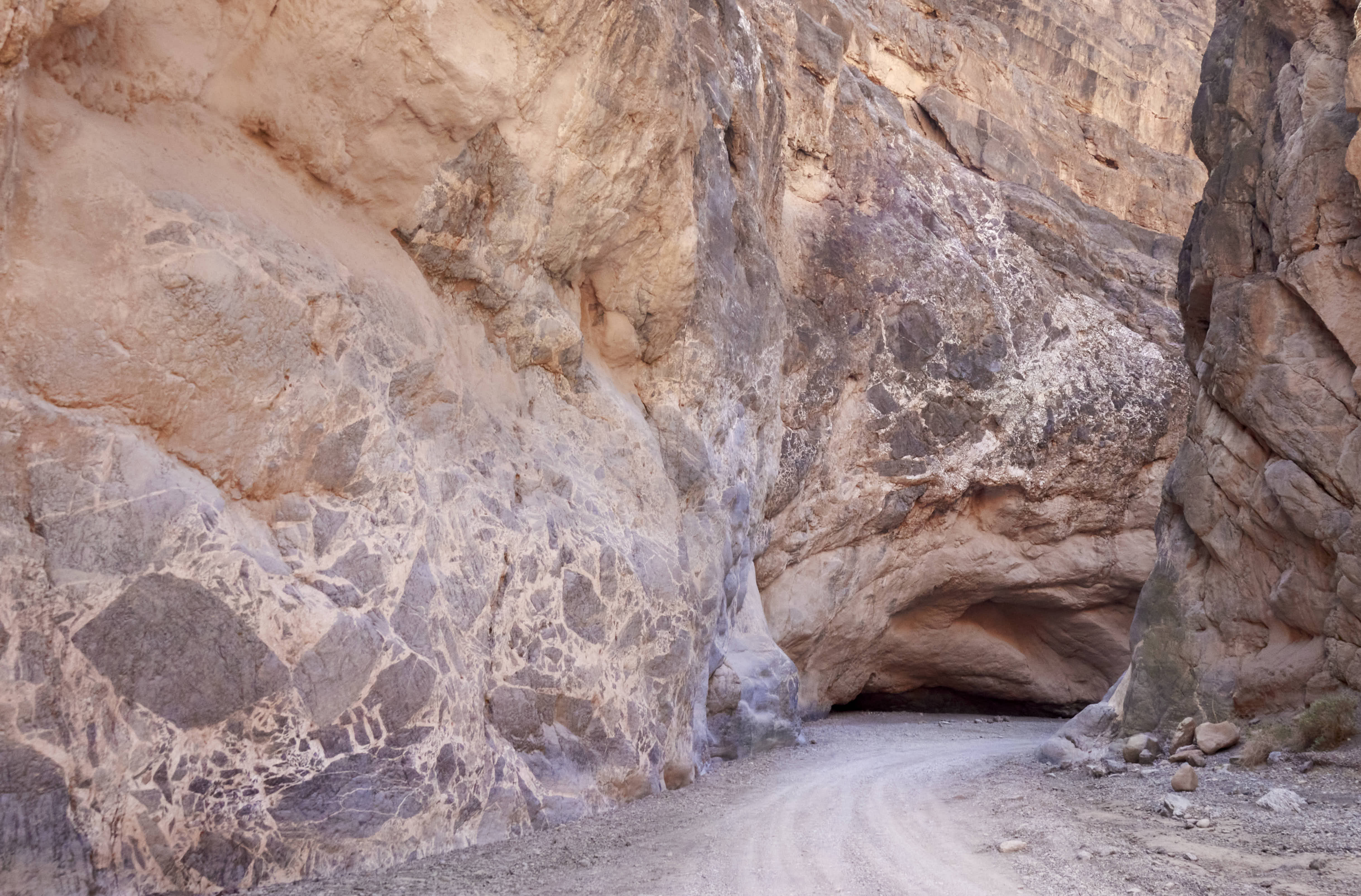 And then there was Titus Canyon Road to explore. It was the most recommended thing that I should do. I didn’t even think to question what the road was like. The road is so popular that “everyone” drives it. And it has a ghost town, petroglyphs, and the breccia rock – stuff I like. Off I went to drive the one way road which starts near Rhyolite. All was happy until I saw the road ahead cut into the hill side. Oh crap. For those that have read some of my prior post you will know that I have an irrational fear of roads with a sharp drop off on one side.
