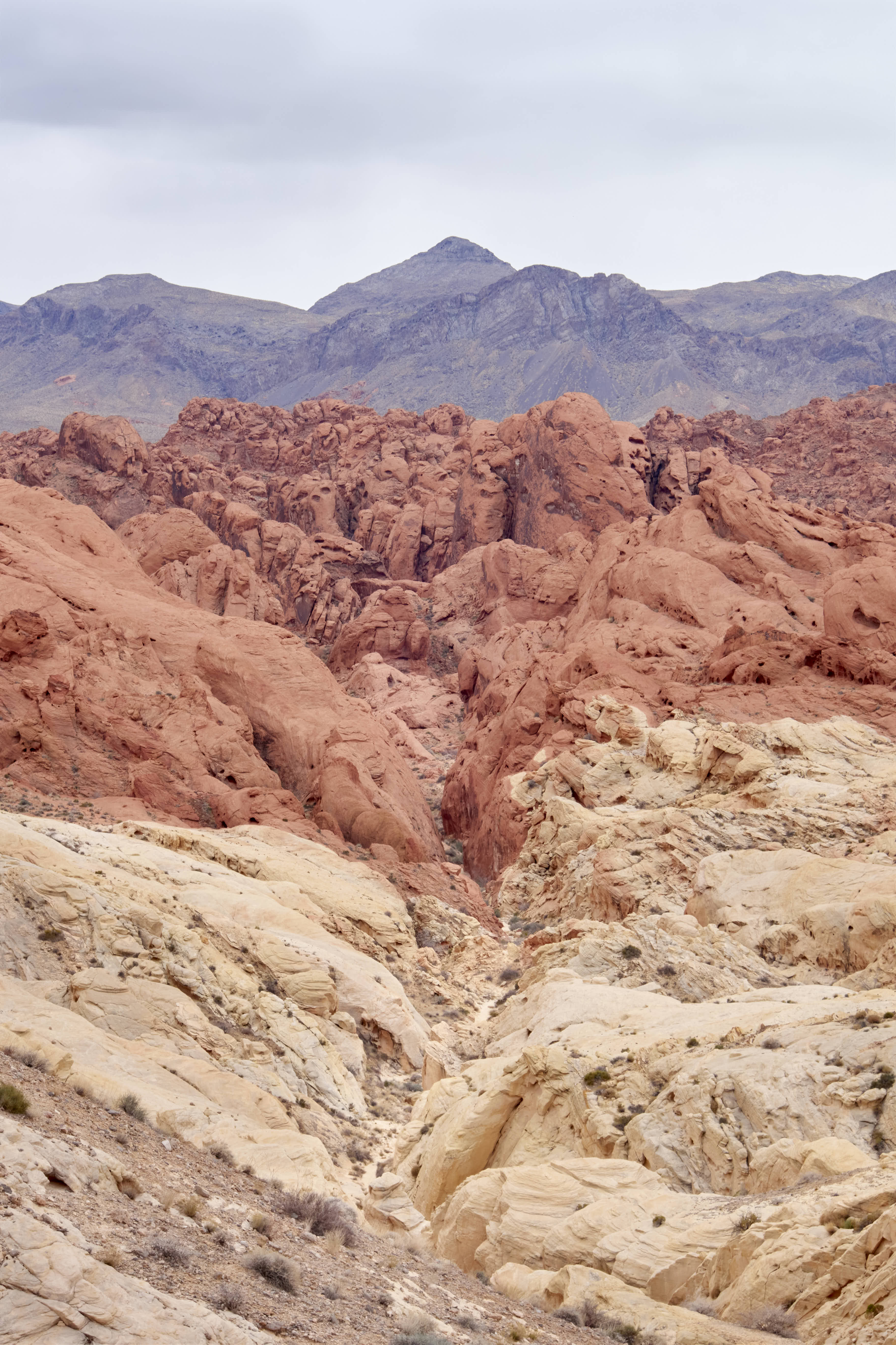 After staring at maps and checking weather forecasts, I decided my next location would be the Valley of Fire State Park, Nevada. High wind warnings, potential rain for the next couple days, and rather chilly temperatures all were in the forecast. I wanted to be nestled into the rocks of the Valley of Fire campground protected from the high winds, with power to run my electric heater since my trailer propane heater was on the fritz, and be on paved roads if it rained. The park would be a good place to hang out for a few days with the poor weather.