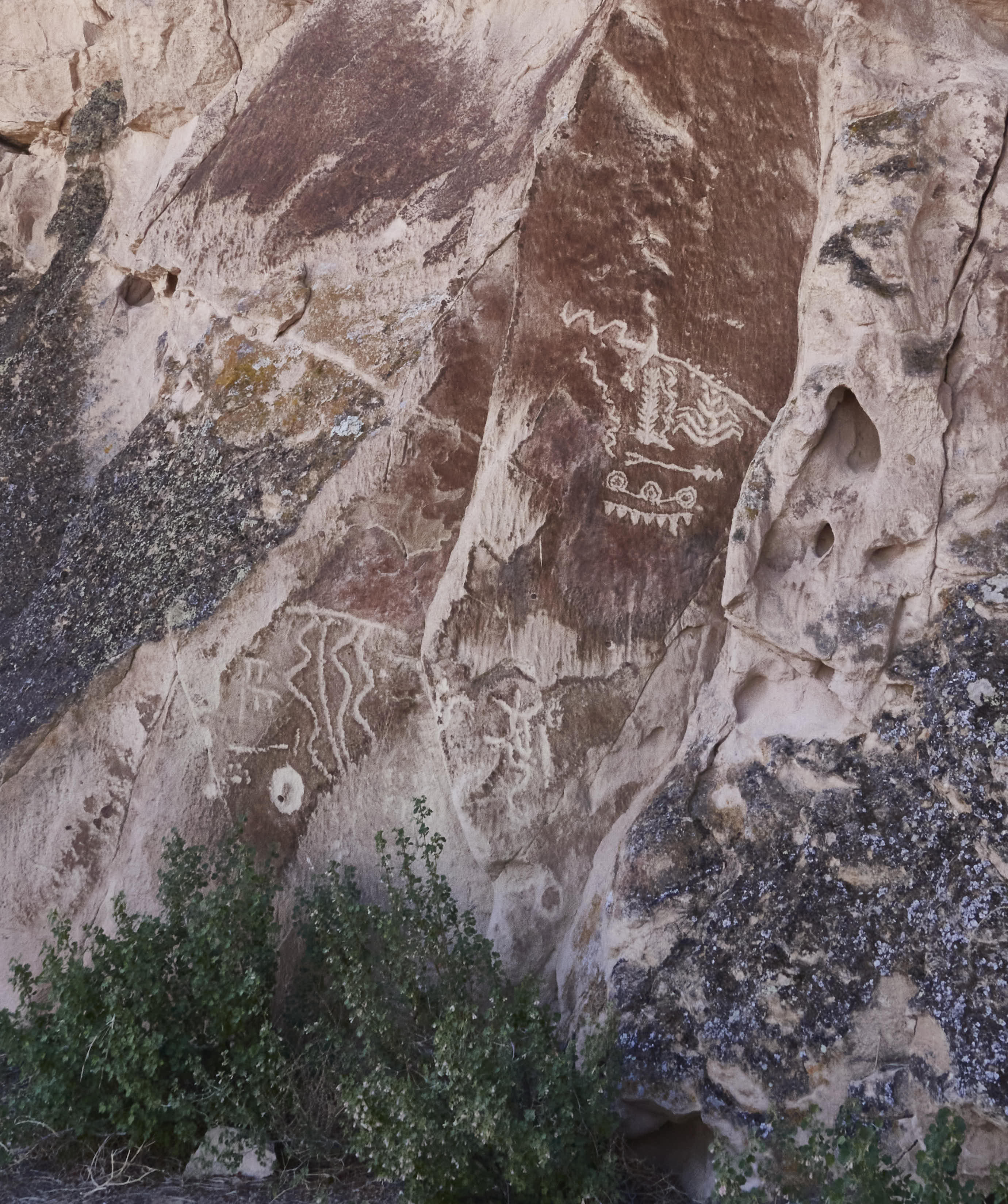 I discovered that petroglyphs and pictographs are scattered through a large region by Caliente, NV.