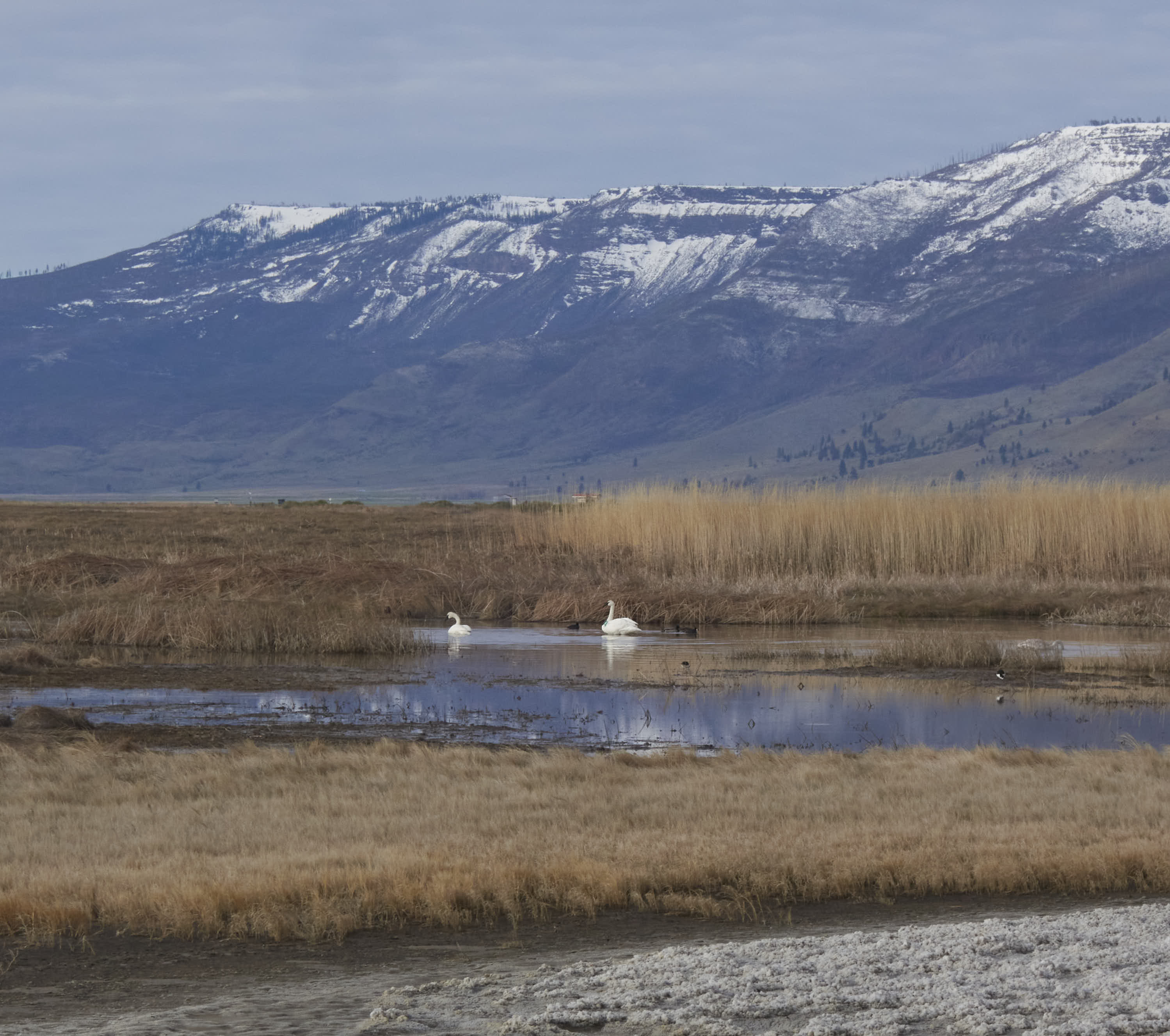 I camped at Summer Lake in 2013 and have wanted to return for years. Last fall I was planning on returning but with a weather forecast of bitter cold and snow, I aborted that plan. On this trip, on my way south I was going to stay. Instead I only saw Summer Lake as I hurriedly drove south working to keep ahead of a bitter cold front descending from the north. Now today. As I drove north I was driving through dark gray skies and snow. In places there was a couple of inches of snow covering the ground. The wind was blowing cold. I made the decision that if I could find a place to fill my propane tanks for the furnace, I would turn off the road and stay. I was able to get the propane tanks filled – I ventured to Summer Lake. It was better than I remembered.
