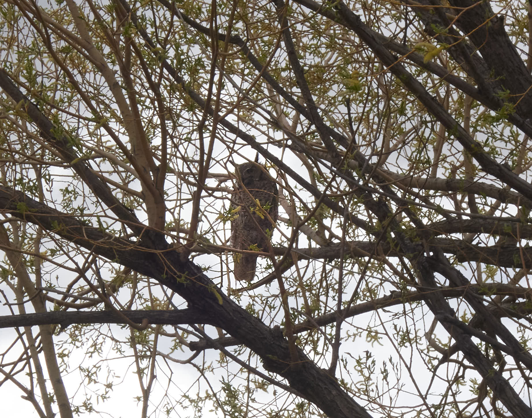 I chose to stay at the same place as before because I remembered hearing an owl during the night and then seeing it in a near by tree. This trip I didn’t hear the owl, but the next morning I looked in the tree and there was a Great Horned Owl sitting there. I checked the internet and found that a Great Horned Owl can live thirteen years. It is possible that it is the same owl, but I’ll admit it probably isn’t.