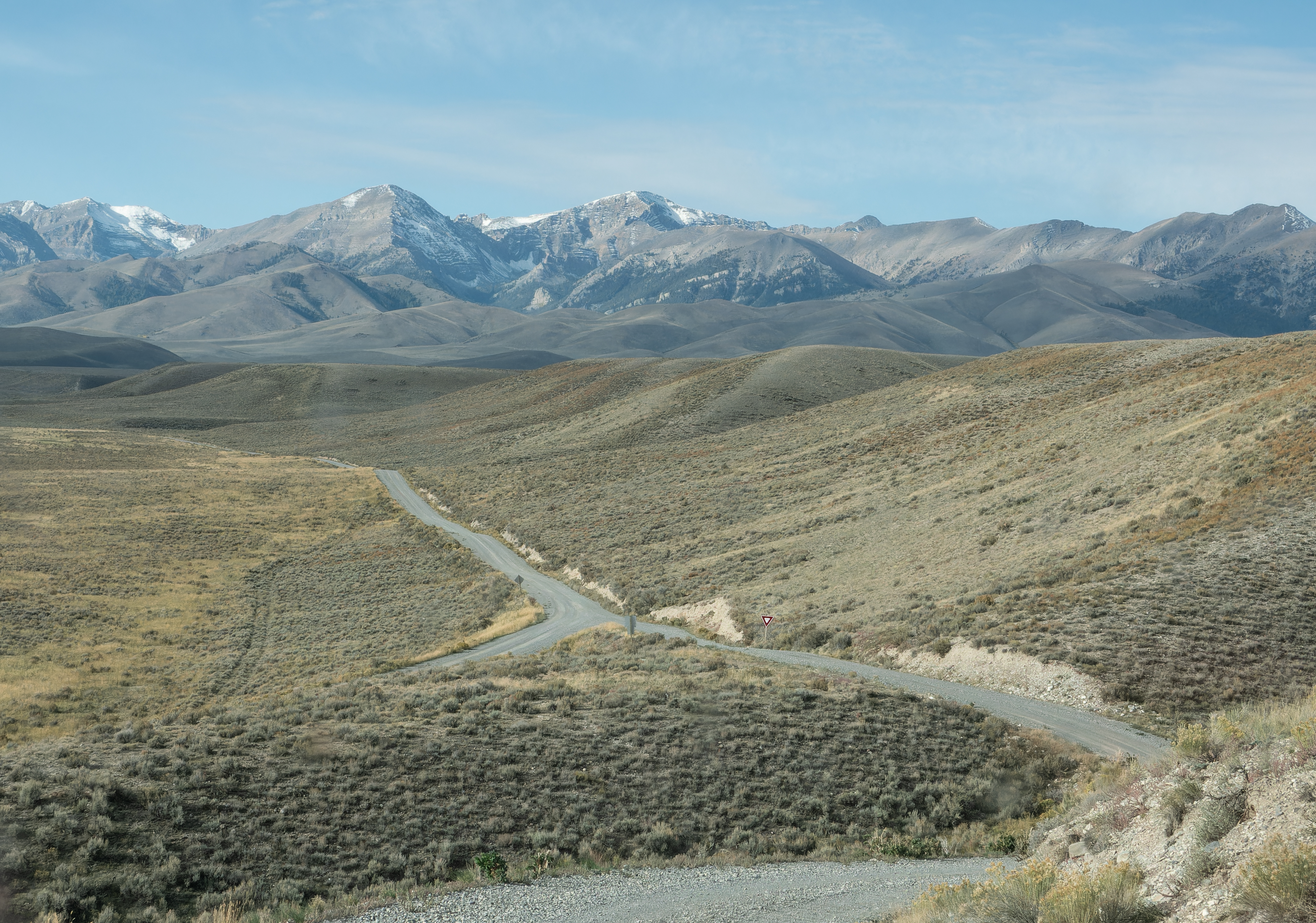 Such magnificent views. I wanted to see the mines above Mackay, so I drove the Pass Creek Road westward. It was gorgeous and the view of the road below made me chuckle. Look closely in the photo below and you will see a yield sign by the intersection. Is the yield sign needed in the middle of nowhere?